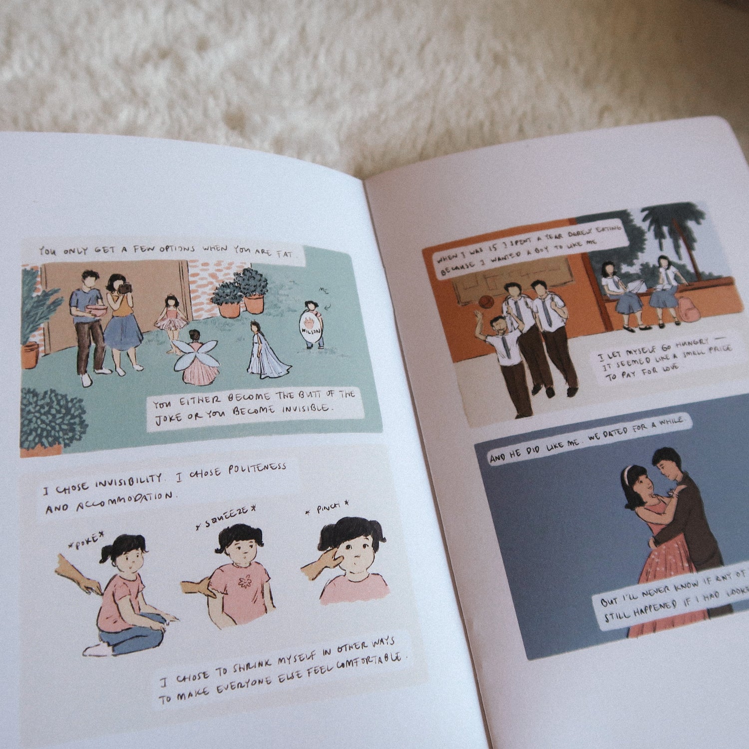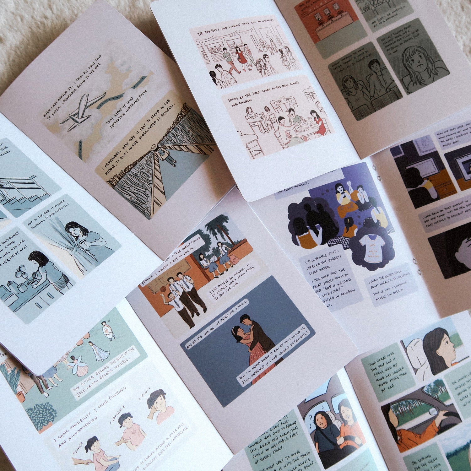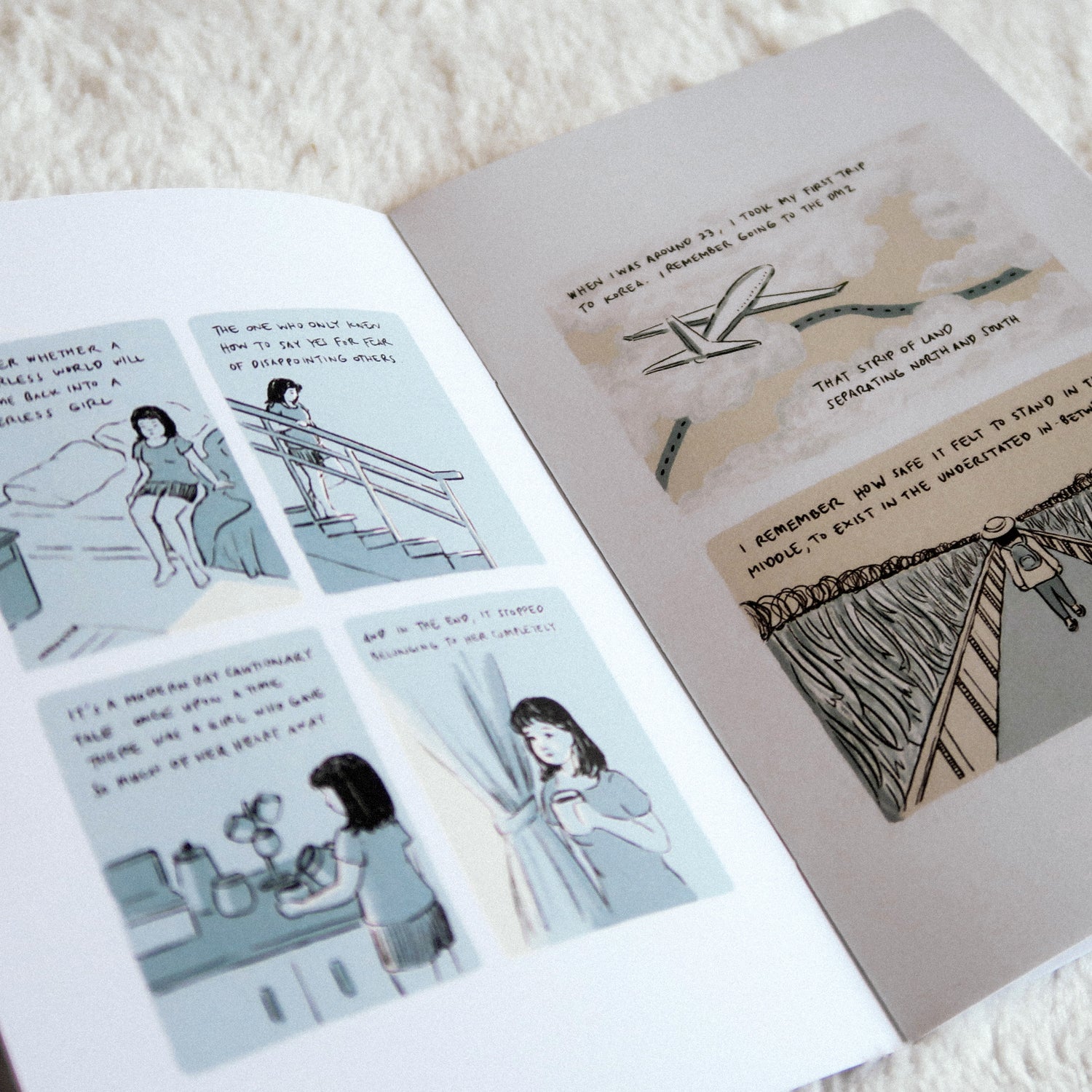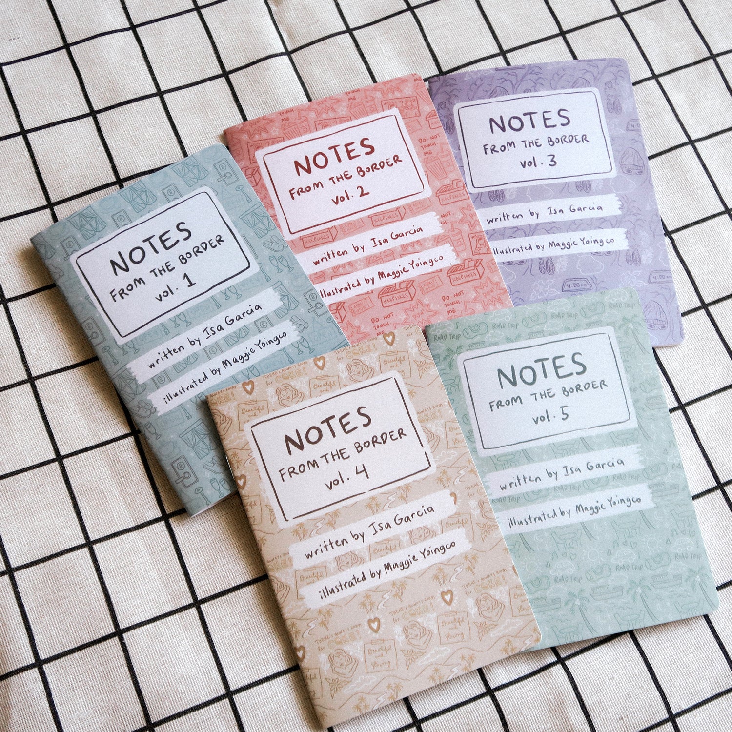We talked about a few ways to bring Notes From The Border to life (maybe another book or a compilation of five-in-one), but eventually, we went with a collection of mini zines (in size and in content) that readers can flip through, like a note for themselves to take it easy. Each volume had a specific theme, so it was important that we highlighted each of those stories.